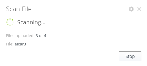 In this section •Opening a Panel to Scan Local Files and Adjusting Scanning Parameters •Starting the Scanning of Local Files The web interface allows you to quickly scan files stored on your local computer used to access the web interface. The scanning engine included in Dr.Web Server Security Suite is used for scanning. The files selected for scanning are uploaded via HTTP to a server, but after the scanning, even if threats have been found, the files are not stored on the server and are not quarantined. The user who sent the files for scanning is only informed about its result. Opening a Panel to Scan Local Files and Adjusting Scanning Parameters You can select and upload the files for scanning via a panel for scanning local files, which is displayed when you select the Scan File item on the main menu of the web interface. The activated panel is displayed in the bottom right corner of the web interface. The figure below shows what the panel for scanning local files looks like. ![]() Figure 7. Panel for scanning local files To close this panel, click ![]() Figure 8. Adjusting the parameters for the scanning of local files To apply the adjusted settings and to return to the file selection mode, click Apply. To go back to file selection without applying changes, click Cancel. Starting the Scanning of Local Files To start file scanning, click the target area Drag files for scan here or click to select; at that, a standard file chooser of your file manager opens. You can select multiple files at once for scanning.