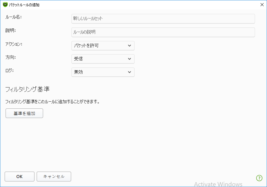また、ヘッダの中には追加の基準を設定することが可能なものもあります。追加されたすべての基準は、パケットルールの編集ウィンドウに表示され、変更することができます。